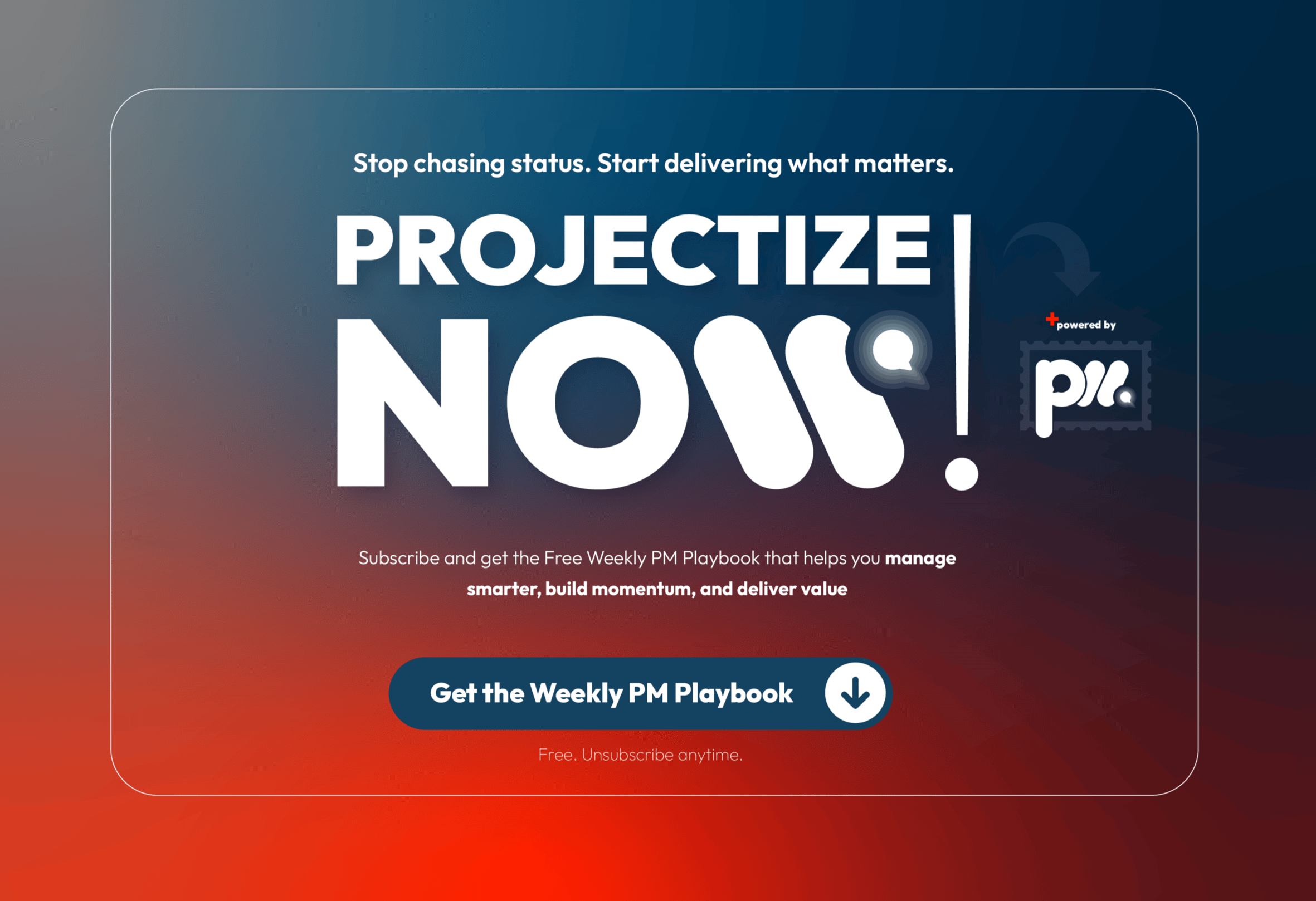 ProjectizeNOW! is your weekly PM playbook—real-world playbooks, field-tested tools, and delivery systems to help PMs and leaders manage smarter and deliver with confidence. Straight to your inbox.